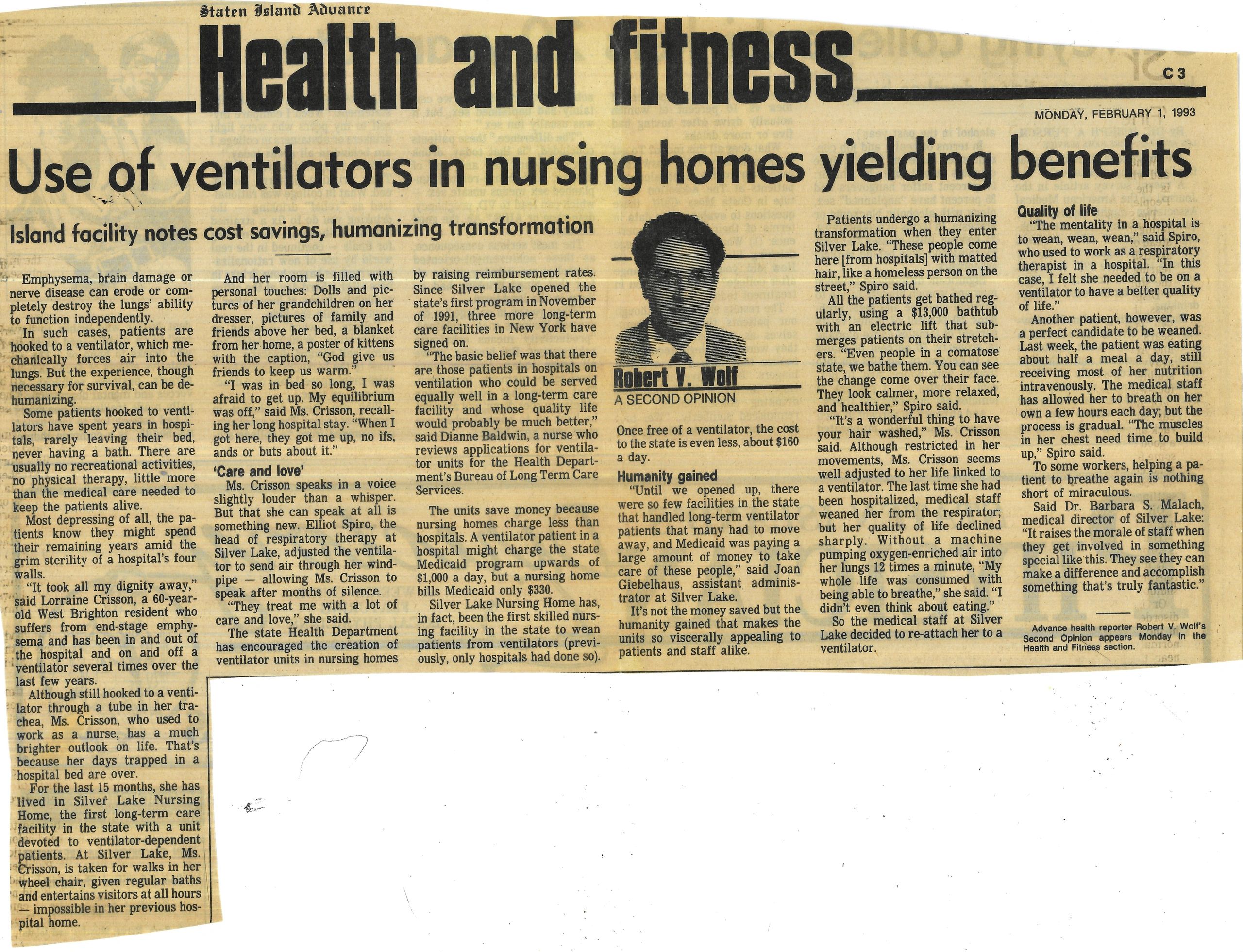 We received the award for excellence for our very unique and innovative approach to Respiratory Therapy using The Passy-Muir Valve.